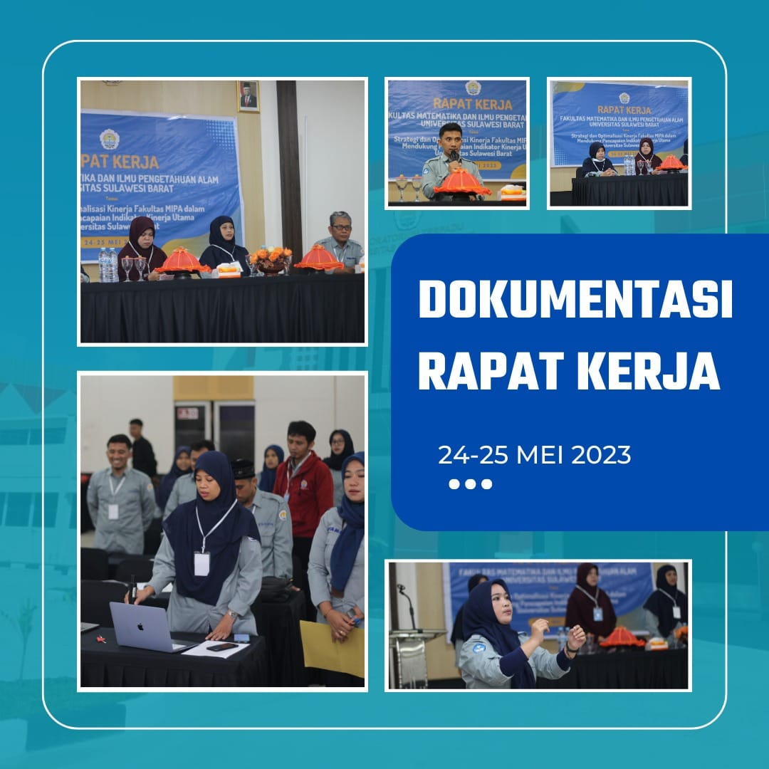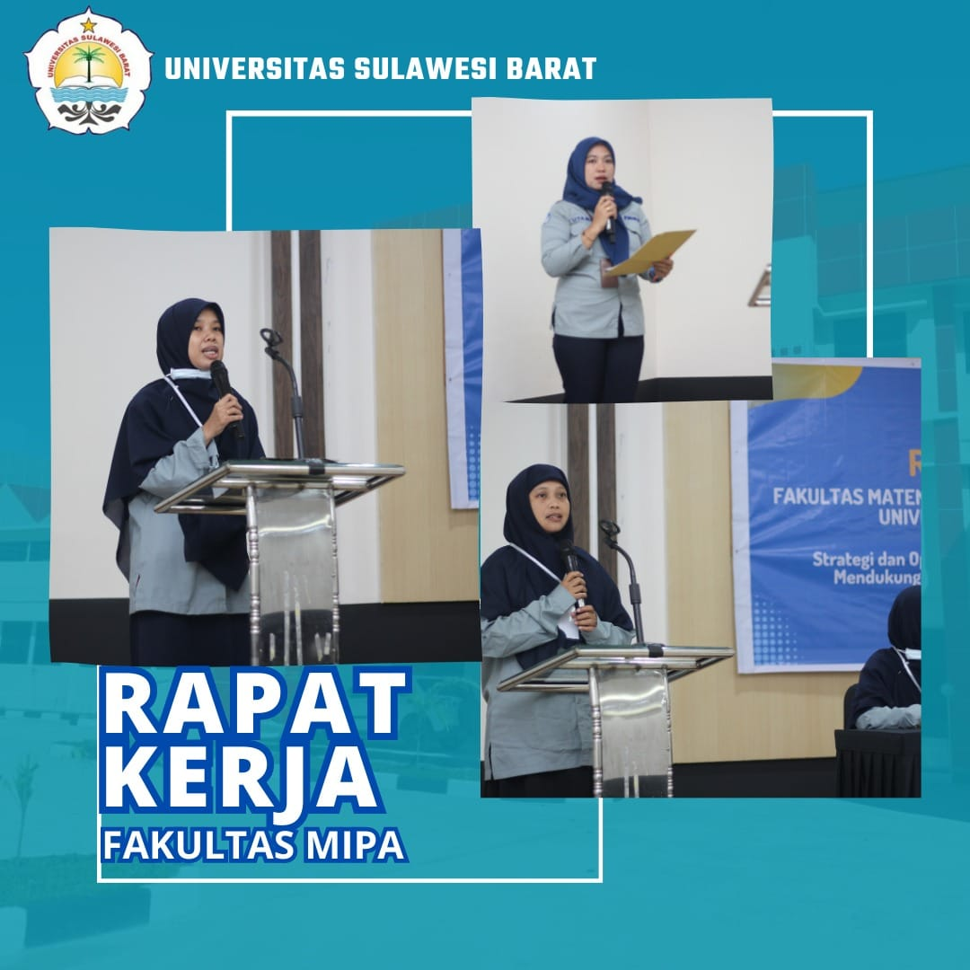 Fakultas Matematika dan Ilmu Pengetahuan Alam Universitas Sulawesi Barat telah mengadakan rapat kerja (RAKER) Tahun 2023 yang berlokasi di Aula Wisma Yumari pada hari Rabu (24/05/2023) dan Kamis (25/05/2023) dengan tema “Strategi dan Optimalisasi Kinerja Fakultas MIPA dalam Mendukung Pencapaian Indikator Kinerja Utama Universitas Sulawesi Barat”. Rapat Kerja ini merupakan kegiatan tahunan yang diselenggarakan oleh Fakultas Matematika dan Ilmu Pengetahuan Alam Universitas Sulawesi Barat. Acara ini dihadiri oleh civitas Fakultas Matematika dan Ilmu Pengetahuan Alam Universitas Sulawesi Barat yang terdiri dari dosen dan tenaga kependidikan.